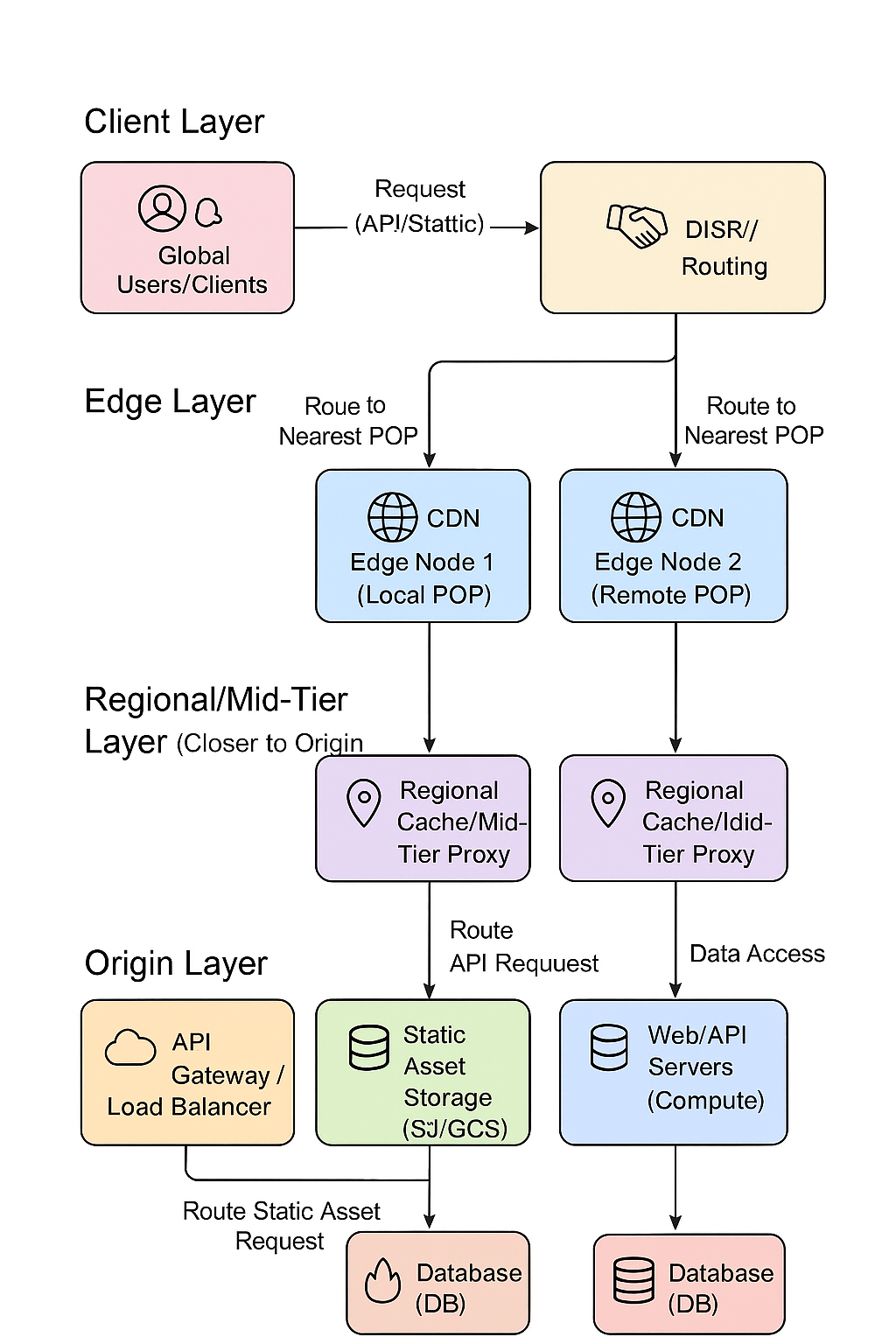 5. 缓存层次:POP 缓存常用小尺寸、热门变体;Regional 缓存保留少数高成本变体;Origin 存储原始图片(master)。 工程注意