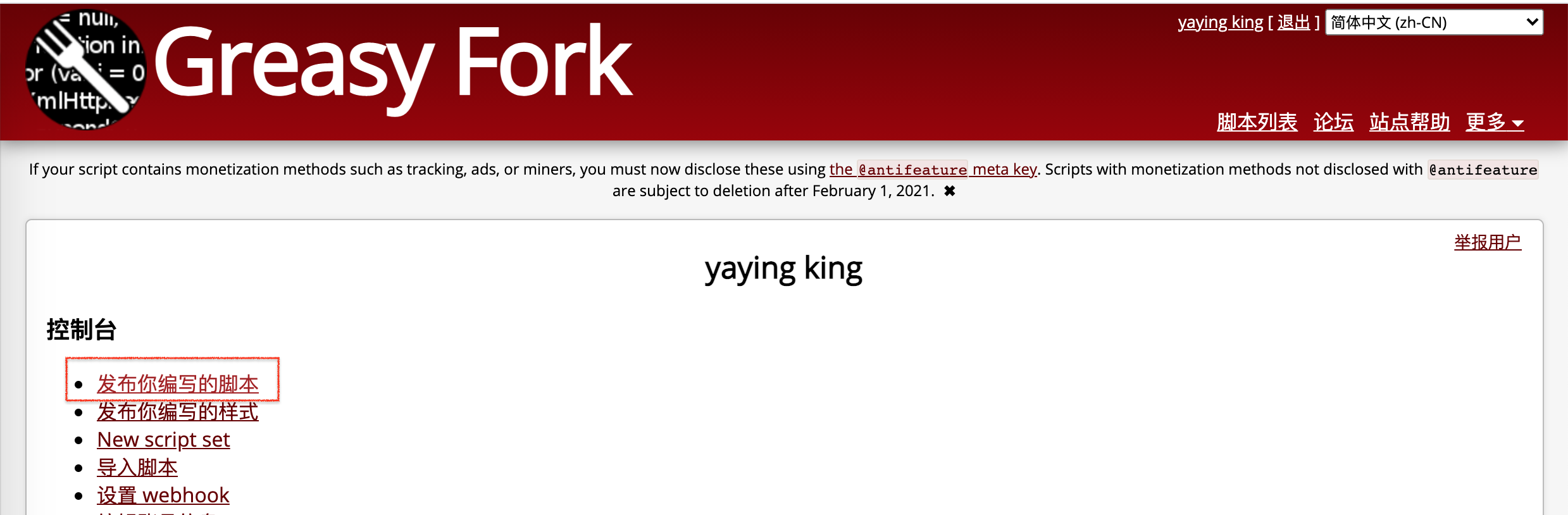 发布油猴市场的优点是不用审核,即发即用,非常方便。