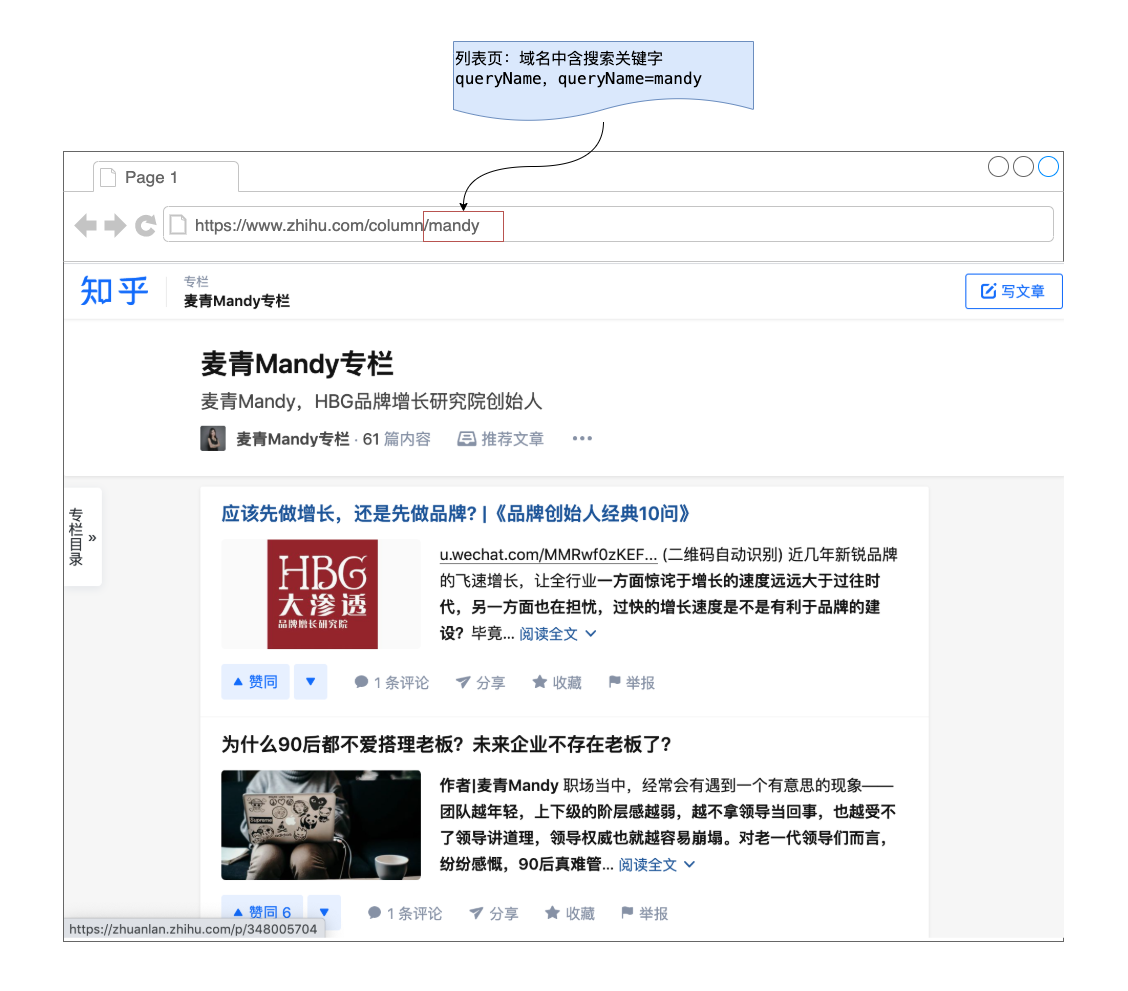 而列表页又存在两种域名:https://www.zhihu.com/column/mandy 和 https://zhuanlan.zhihu.com/mandy 所以在else逻辑里针对https://www.zhihu.com/column/mandy做了处理,只保留/mandy