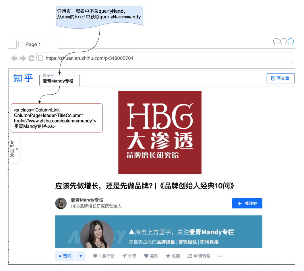 其中this.queryName是专栏名称,当页面为专栏列表页 (opens new window)时就是pathname; 当页面为专栏详情页 (opens new window)时,需要通过类名为ColumnPageHeader-TitleColumn的a标签的href来获取。